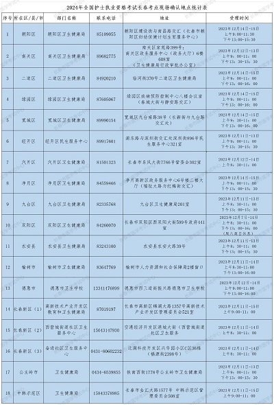 各區(qū)衛(wèi)健局現(xiàn)場(chǎng)確認(rèn)具體時(shí)間及確認(rèn)地點(diǎn):2024年護(hù)考長春考點(diǎn)現(xiàn)場(chǎng)確認(rèn)地點(diǎn)