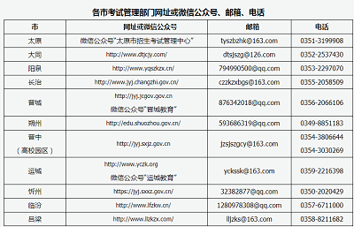 2022年上半年山西省中小學教師資格考試(面試)各市考試管理部門網址或微信公眾號、郵箱、電話