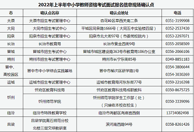 山西省2022年上半年中小學教師資格考試面試報名信息現(xiàn)場確認點