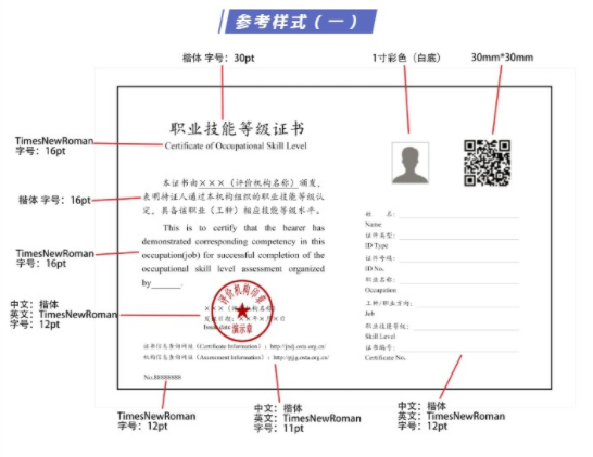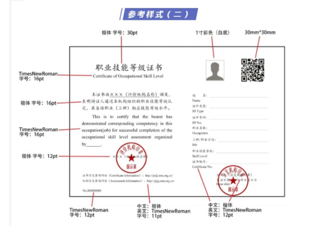 評價機構(gòu)可根據(jù)實際情況在證書上增加省(自治區(qū)、直轄市)人力資源社會保障部門證書查詢網(wǎng)址和證書印制流水碼。