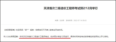 天津市2022年度首次二級造價工程師考試初步預計12月舉行!