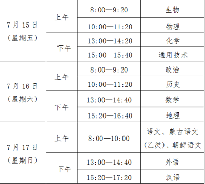 經研究決定,2022年3月我省普通高中學業考試調整至7月15日—17日舉行,具體考試時間安排如下: